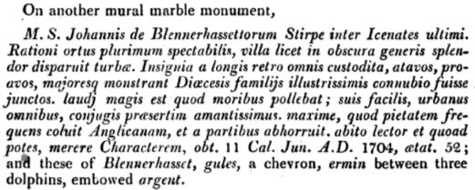 M. S. Johannes de Blennerhasettorum Stirpe inter Icenates ultimi.