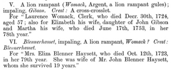 The "lion rampant" of the Blennerhassett monument is probably not Womack but Rowe (Row), Elizabeth's maiden name