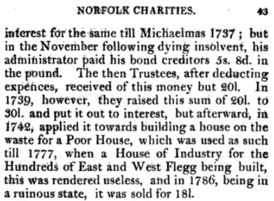 ["An Account of the Different Charities Belonging to the Poor of the County of Norfolk" by Zachary Clark, Bury St Edmunds 1811 pp.42-43] |