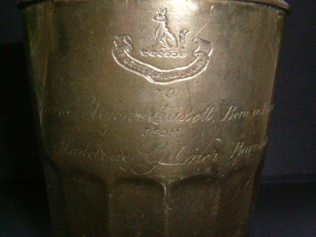 In 1873 Dr Edward Blennerhassett presented a silver christening mug to a godson Edward Blennerhassett Tranfield, the mug engraved "EBT 9 May 1873".