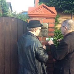 A "HistoryPoints" QR code plaque is mounted on the brick gatepost of Irvine Blennerhassett's home at 1 Clarence Villas, Crickhowell. This was installed on 8-Dec-2015 by Maldwyn Powell of Crickhowell and District History Society, assisted by members of the society and by Bill Jehan of the "Blennerhassett Family Tree" website. See Crickhowell and District History Society Newsletter No.12 - Winter 2015.